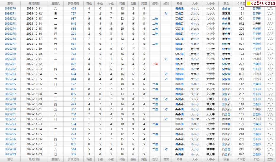 首页 > 福彩3D预测 > 25年300期福彩3D综合统计表