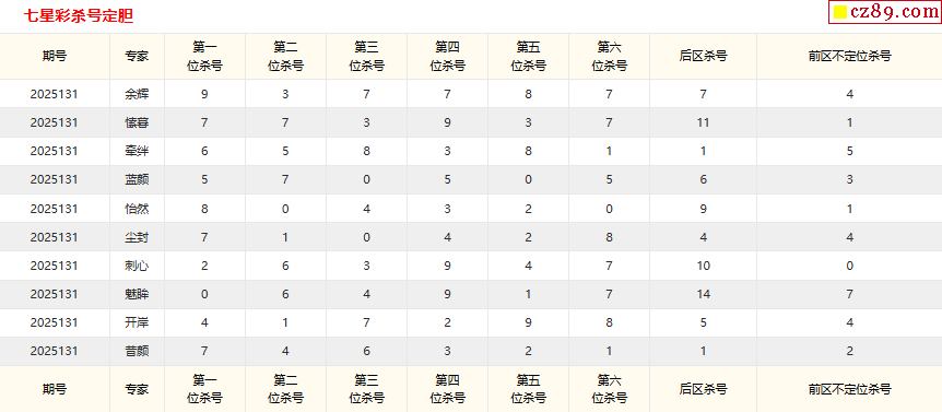 七星彩131期 彩宝贝专家直选杀号预测图表